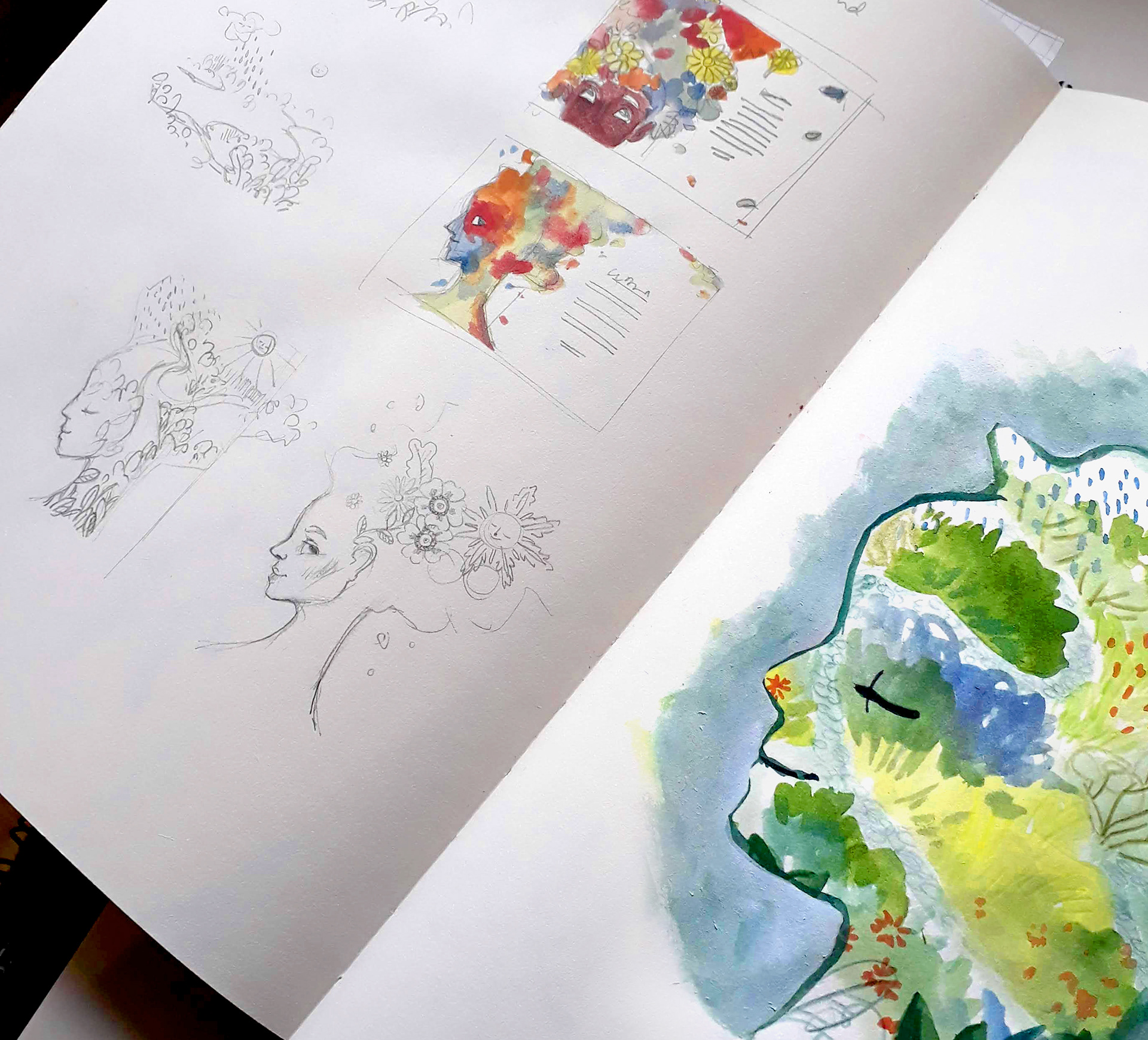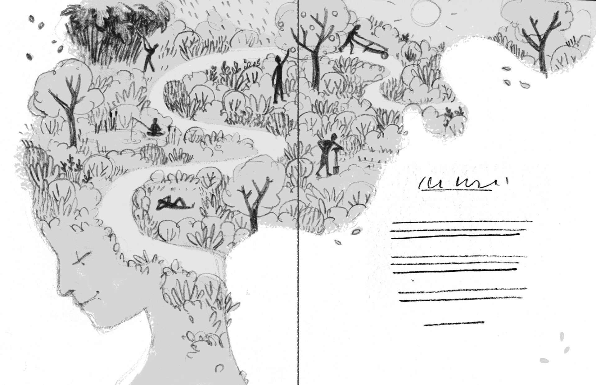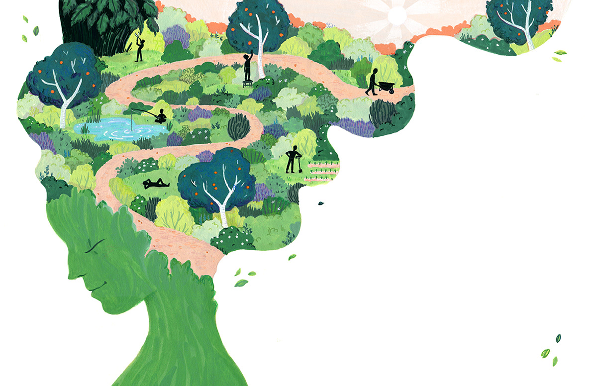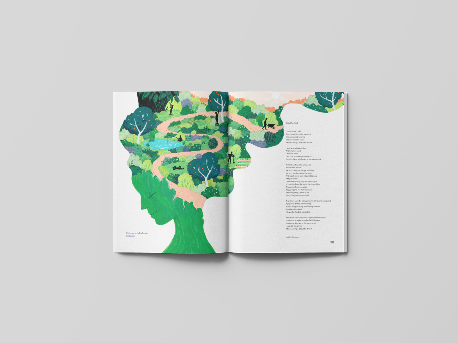 An editorial illustration commissioned by Any Segment magazine on the theme of 'beautiful mind'. The double page spread was published with a poem inspired by the image. A digital version of the magazine also features an animated version.