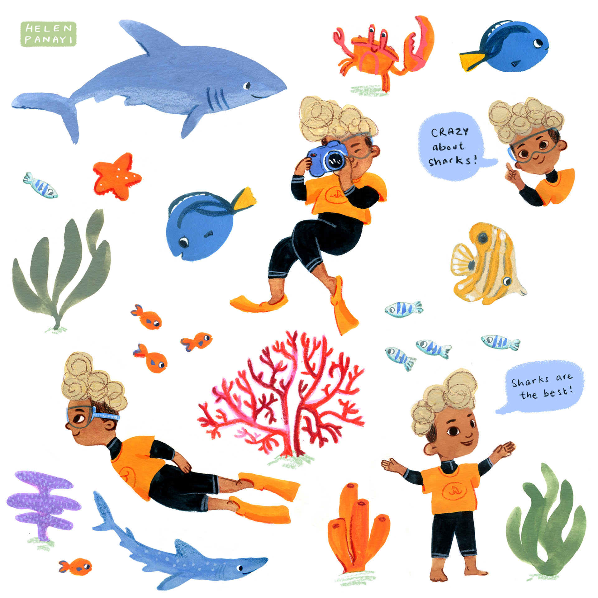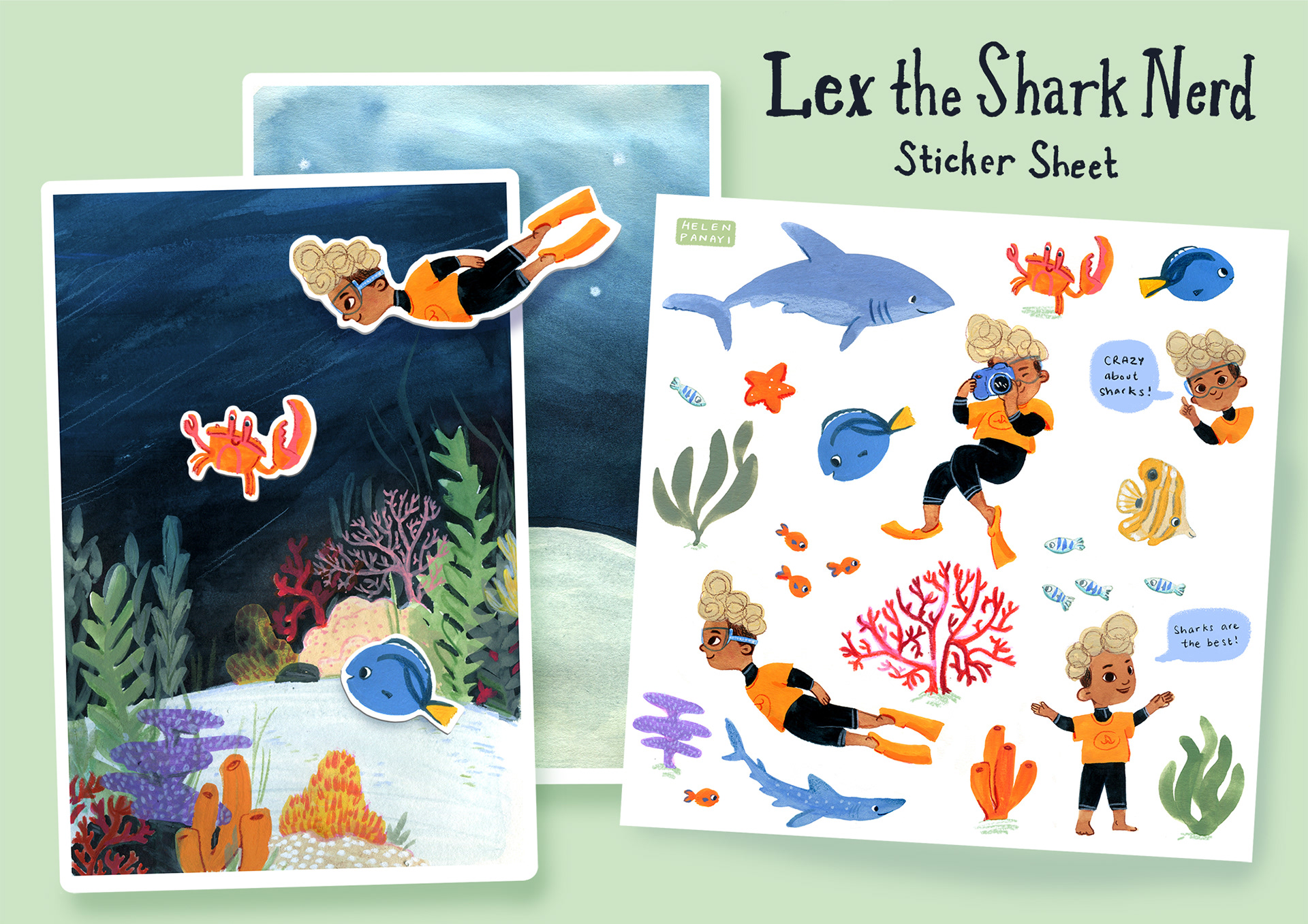 Lex is CRAZY about sharks. They're a shark expert and theyre ready to tell you everything they know about the coolest creatures in the sea. Character designs, and picture book artwork including cover art. Plus a fun sticker activity kit.