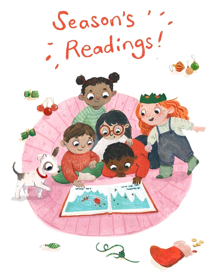Winning entry for a Christmas card competition from Sweet Cherry Publishing. A Christmas themed illustration focusing on warmth, inclusivity and the joy of reading.